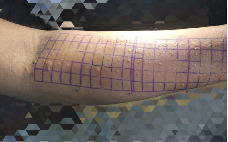- The size of the reaction is measured and recorded, after which the skin is cleaned with alcohol to remove the marks.
